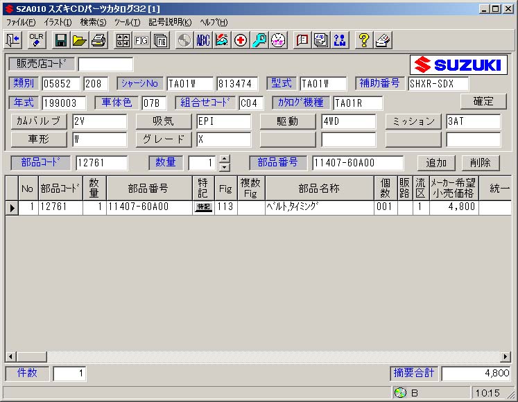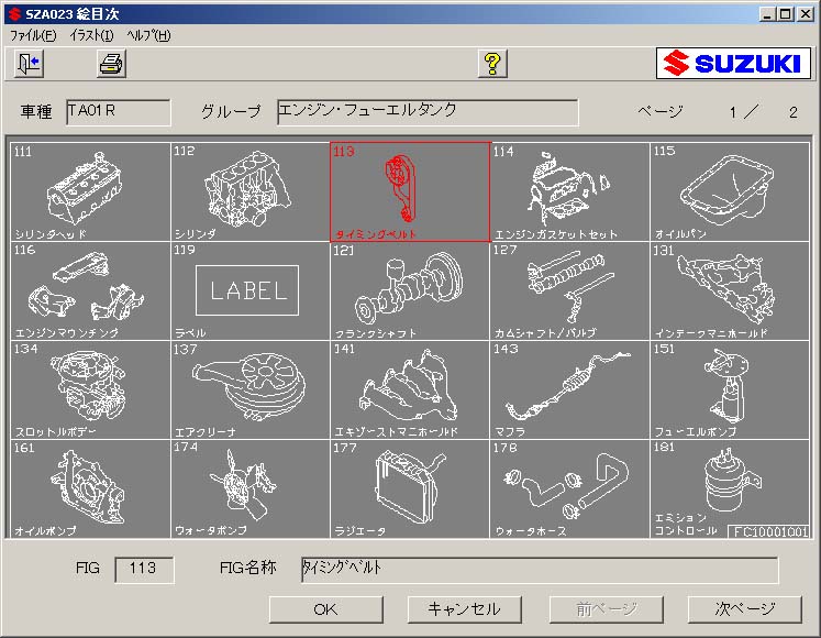 Каталог запчастей SUZUKI for Windows использует интерфейс программы Nissan Fast,
