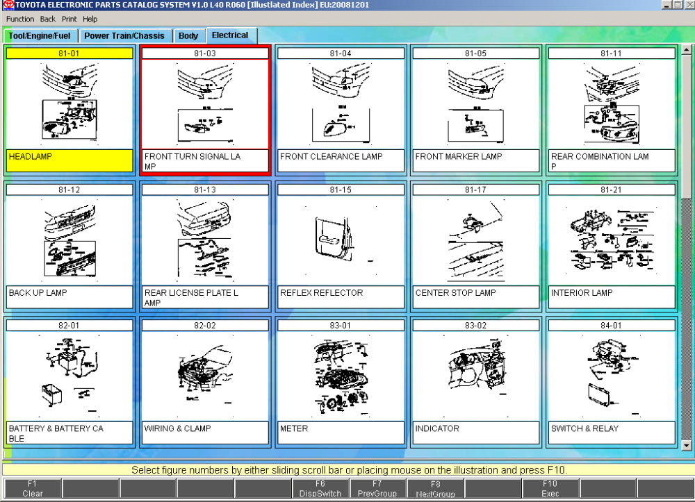 4. Группа запчастей; Электросистема и оптика" в каталог запчастей TOYOTA |