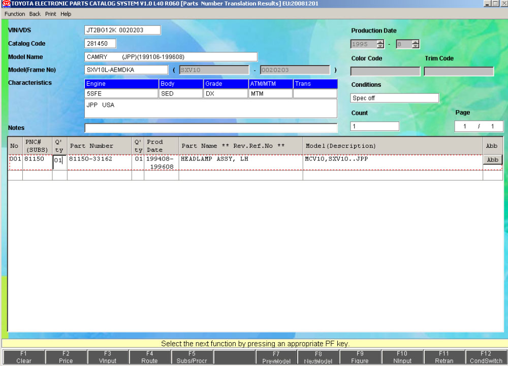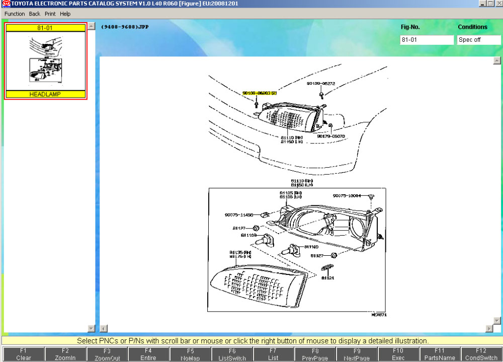 5. Выбор запчасти (фара) в каталог запчастей TOYOTA |