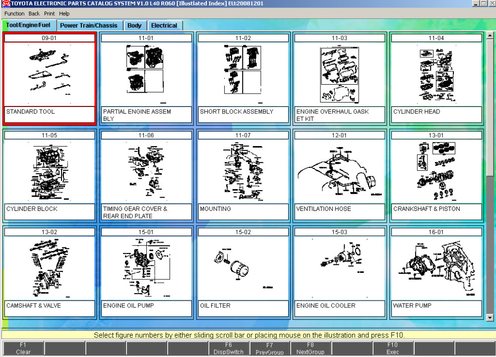 Каталог запчастей Toyota есть четыре встроенных языка (английский, французский, немецкий, испанский) наименования запчастей и пять языков интерфейса, четыре встроенных и один настраиваемый (то есть любой).